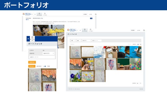 創作したものや学習プリント、学習活動の写真などを記録していく機能です。テキスト入力も可能なので、その時の感想や振り返りも記録できるようになります。設定により、先生や保護者も登録・閲覧が可能になります。学習の様子を保護者に伝えるのにぴったりです。