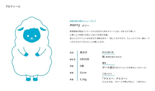 社内外からの要望も受け、メリーのLINEスタンプ第2弾の発売が決まりました。発売日の3月29日はメリーの誕生日です。羊のキャラクター・メリーは弊社が製造するトイレットペーパーのパッケージ、うちわやカレンダーといったグッズにデザインされるなど、広報の役割を担っています。
