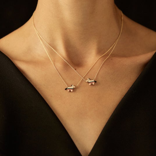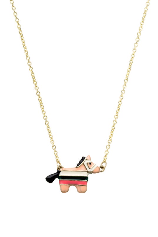 ピニャータネックレスは、クリエイティブ・ディレクターであるシンシア・カスティリオーニの母国ベネズエラの豊かな文化に敬意を表し、ラテンアメリカのパーティーには欠かせない伝統的なロバの形をしたピニャータからインスパイアを受けています。