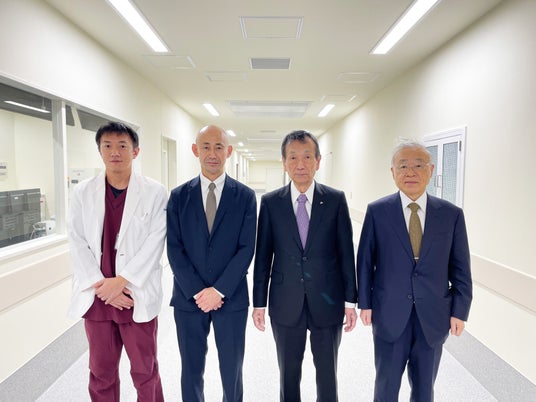 新棟内にて(左より:埼玉石心会病院・元志宏医師、石井耕士病院長、金井忠男埼玉県医師会長、廣澤信作埼玉県医師会副会長)