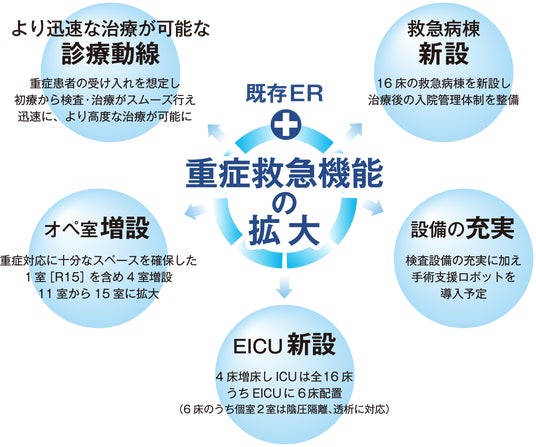 ER専用手術室、手術支援ロボット導入予定の手術室を含め4室増室。