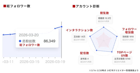 その結果、配信開始からわずか3ヶ月で小紅書(RED)の総フォロワー数8.6万人を突破し、日本人クリエイターとしてトップクラスのエンゲージメントを獲得しています。