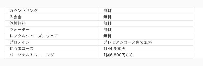パーソナルトレーンング料金案内