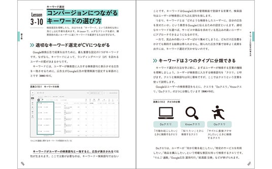 Google検索広告に関する考え方を、実際の管理画面や図解を用いて具体的に解説しています。専門用語が苦手でもスムーズな学習が可能です。