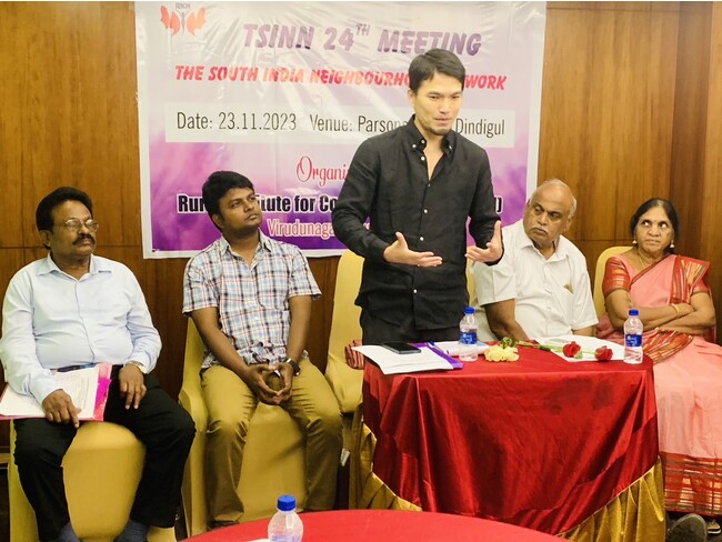 11月23日、タミルナド州ディンディガルにて開催されたTSINN(The South India Neighbourhood Network)の第24回ミーティングに結び手代表理事福岡洸太郎が参加しました。
