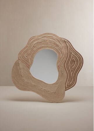 Wendy Andreu(ウェンディ・アンドリュー)は、ポレーヌにとって大切なテーマとなっている流麗なラインと自然な色合いを組み合わせながら、ミラーのデザインを考案しています。こうして360度の山並みの景色が現れます。最初のモデルに選ばれたのはエクリュのコットンコードとテクスチャードトープレザーの組み合わせ。2つ目のモデルには、ナチュラルカラーのコットンコードとベージュとキャメルのテクスチャードレザーの端切れを選んでいます。使用されるシリコンは、モデルの色調に応じた同系色で一体化しています。2つのメタルフックによって、ミラーはお好みの向きに取り付けることができます。