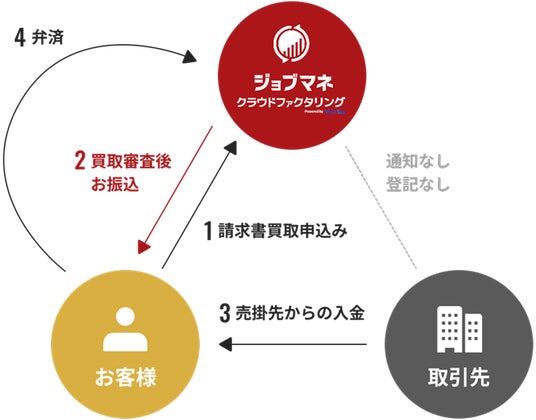 本サービスは、中小企業や個人事業主が保有する商取引で発生した「入金待ちの請求書(売掛金)」を、最短即日で資金化できるクラウド型ファクタリングサービスです。従来の銀行融資と異なり、借入ではなく売掛金の売却によって資金調達を行うため、審査に信用情報の照会や記録が残らず、担保や保証人も不要です。