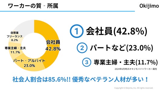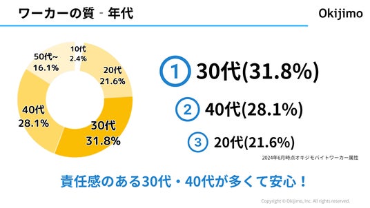 このように、オキジモバイトのワーカーは社会人経験が豊富で責任感のある30代・40代が多く、信頼性の高い人材が揃っています。
