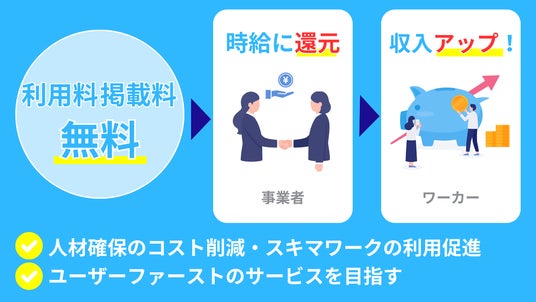 スキマワークとは、事業者が必要な時間帯や特定の業務に合わせて、短期間でピンポイントに人手を確保できる求人サービスです。求職者は空いた時間を活用して働くことができるため、柔軟な働き方が可能です。これにより、事業者は効率的に人材を活用し、求職者は自分のライフスタイルに合わせて働くことができます。