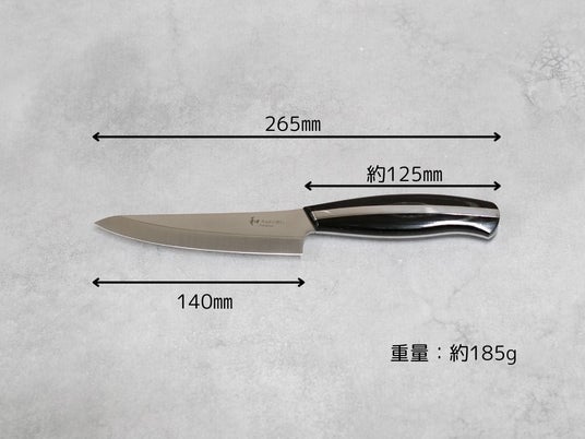 骨スキは刃厚を活かし、主に魚を捌いたり骨付き肉の骨から肉を綺麗に切り剝がしたりするための丈夫な包丁です。峰厚が3.0mmと厚く、硬い食材を切る際に用います。
