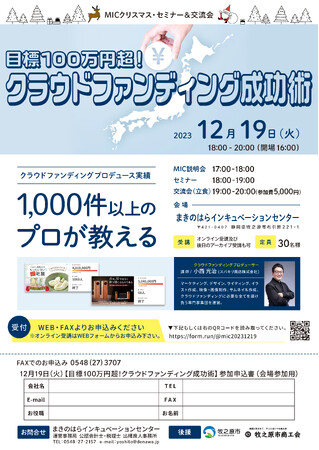 MICクリスマス・セミナー&交流会「目標100万円超!クラウドファンディング成功術」