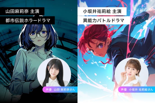 本アライアンスにより、株式会社クロコダイル所属の声優による、ボイスドラマを順次配信いたします。先行して「ホラー都市伝説作品」(主演:山田 麻莉奈)リリース、「異能力バトル作品」(主演:小坂井 祐莉絵)のリリースを近日予定です。
