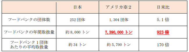【日米のフードバンクの比較】