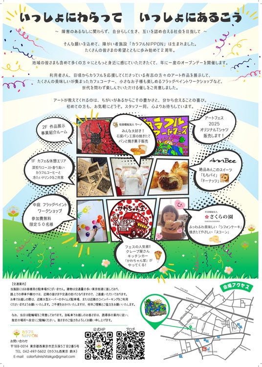 一般社団法人カラフルNIPPONは2025年6月15日、主に自閉スペクトラム症・行動障害を対象とした生活介護および共同生活援助(グループホーム)施設「カラフル西東京(東京都西東京市芝久保町五丁目2番5号)」の創設2周年を記念し「カラフル・アートフェス」と題したアートイベントを開催した。