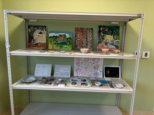 絵画だけではなく、陶器や編み物など出展品も多様。