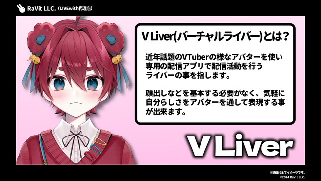 国内最大級*のライブ事務所LIVEwithの代理店である合同会社RaVit (東京都中央区:代表 白川糧)は2024年3月31日まで、VLiver&顔出しLiverオーディションを開催する事をお知らせします。また、それぞれが持つノウハウを活かす事により、自分の活動スタイルに合った配信アプリ上で、活動を始めることができます。