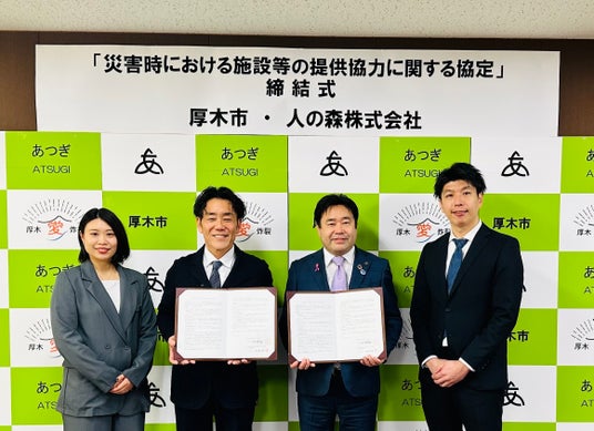 人の森株式会社(本社:神奈川県海老名市、以下「当社」)は、神奈川県厚木市と「災害時における施設等の提供協力に関する協定」を締結いたしました。
