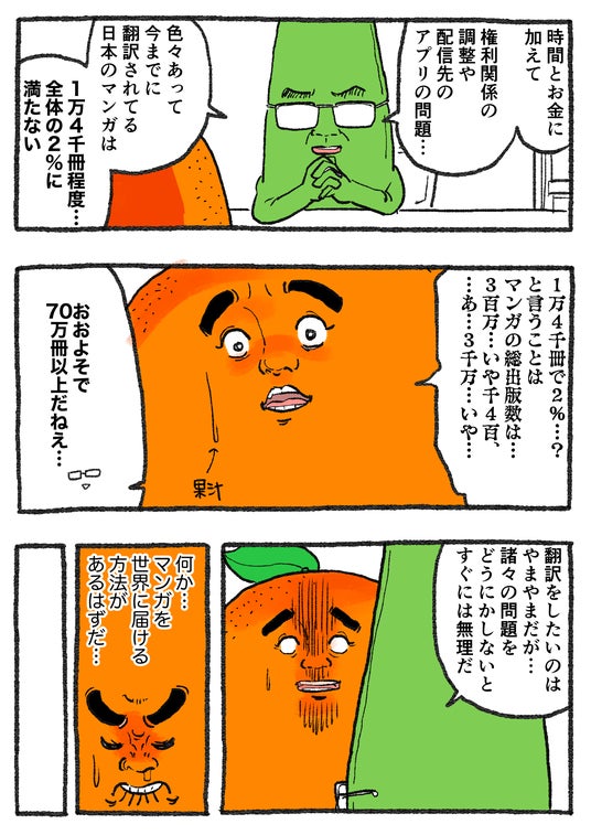 本資金調達の背景、およびマンガ翻訳を取り巻く市場課題については、本リリース付属の特別マンガ『がんばれ!オレンジくん』をご確認ください。