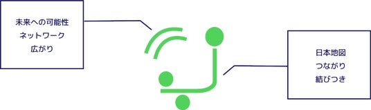 日本地図をモチーフにした線を取り入れ、地域同士が結びつき、新たな価値を生み出す様子を視覚化しました。