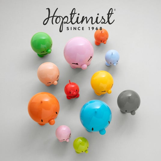 Hoptimist(ホプティミスト)1960年代後半にデザイナー、ハンス・グスタフ・エーンライヒによって生み出されたデザインアイコン。丸い形と豊かな色彩、特徴的な揺れのあるフォルムで、世界中で親しまれています。空間に自然となじむ、カラフルなデザインオブジェです。