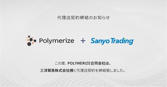 ポリマライズ合同会社(本社:東京都港区虎ノ門1-17-1、代表社員:クナル・サンディープ、以下当社)は、シンガポールを拠点とするPolymerize Pte Ltd.の日本法人として、クラウドベースのマテリアルズ・インフォマティクスプラットフォームを提供しております。本プラットフォームは、AIを活用して材料の研究開発プロセスの劇的な短縮を実現します。当社はこの度、ファインケミカル、モビリティ、サステナビリティ、ライフサイエンスの4分野で市場ニーズの高い製品を手掛けるニッチトップ専門商社である三洋貿易株式会社(本社:東京千代田区、代表取締役社⾧:新谷 正伸、以下三洋貿易)と代理店契約を締結いたしました。