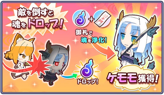 ・「御札」で「魂」を浄化に成功すると、敵ケモモが仲間になって、育成できます!