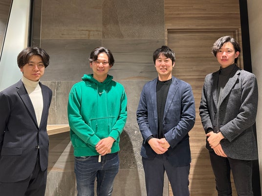 左から、島田(株式会社Kiei 技術責任者)、林様(bloom株式会社 代表取締役)、小田村様(bloom株式会社 最高執行役社長 COO)、佐久間(株式会社Kiei 代表取締役)。