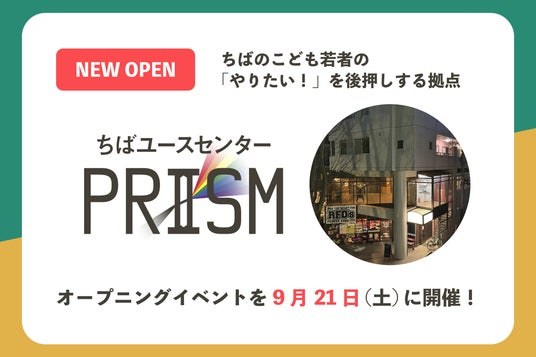 9月21日(土)に、千葉県に住む子ども・若者たちの「やりたい」を後押しするための活動拠点「ちばユースセンターPRISM」を新たにオープンいたします。