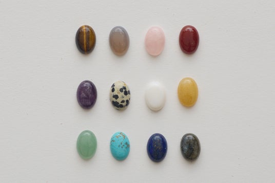 上段左から タイガーアイ/グレーオニキス/ローズクォーツ/カーネリアン