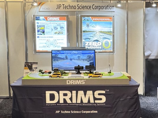 NTTデータグループのJIPテクノサイエンス株式会社(本社:東京都千代田区、代表取締役社長:家入 正隆)はここで、道路維持管理向け製品「DRIMS(R)」を展示しました。