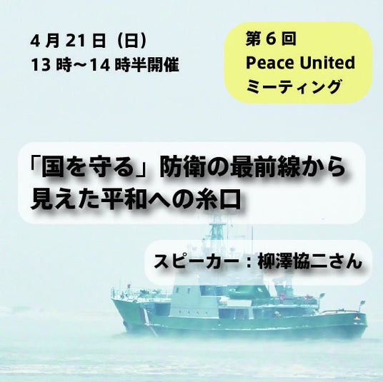 今回のPUミーティングでは、平和の重要性を改めて確認したい今、70年以上「人を殺めることのなかった貴重な組織である自衛隊を持つ日本」、そしてそこに暮らす私たちだからこそできることは何かを伺い、参加する皆さんと一緒に平和について考えてみたいと思います。
