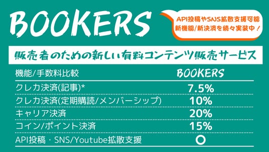 「お手軽さとお得と便利機能を!」有料記事販売者に優しいサービスを目指して開発している「BOOKERS」は特設ページのリリース・API機能の強化により利便性向上をしました。