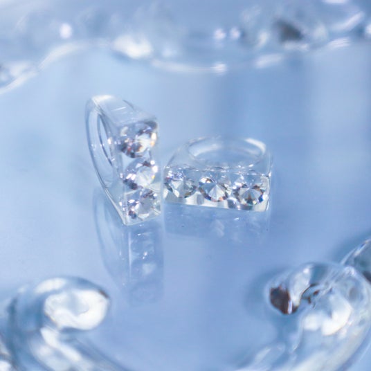 iOstudioの商品では、通常金属に埋まっていて全容を見る事が叶わない、美しいストーンのカットを360度味わう事ができます。透明素材や宝石に光が差し込む際に発生する、7色の美しいディスパージョン(分散光)が、皆様の脳裏にも湧き起こるような商品をお届けします。