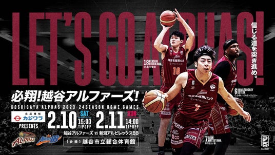 2024年2月10日(土)・11日(日)に越谷市立総合体育館で開催される新潟アルビレックスBB戦は、株式会社カジワラご協賛による『株式会社カジワラPresents KOSHIGAYA ALPHAS 2023-24 SEASON HOMEGAMES』として開催いたします。