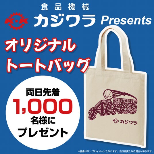 【両日先着1,000名様限定!!】株式会社カジワラPresentsオリジナルトートバッグプレゼント両日先着1,000名様に、オリジナルコラボトートバッグをプレゼントします。■配布場所