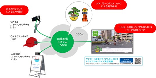 現場からのライブ映像は、市民ボランティアがスマートフォンカメラなどで撮影し、モバイル通信(ピカラモバイル)で連携され、AIアバターによる実況を加えてYouTubeライブとして配信されます。