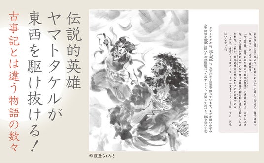 ヤマトタケルが熊襲の首領カワカミタケルを討伐。カワカミタケルは「日本武尊」の名を与える。渡邊ちょんと 画