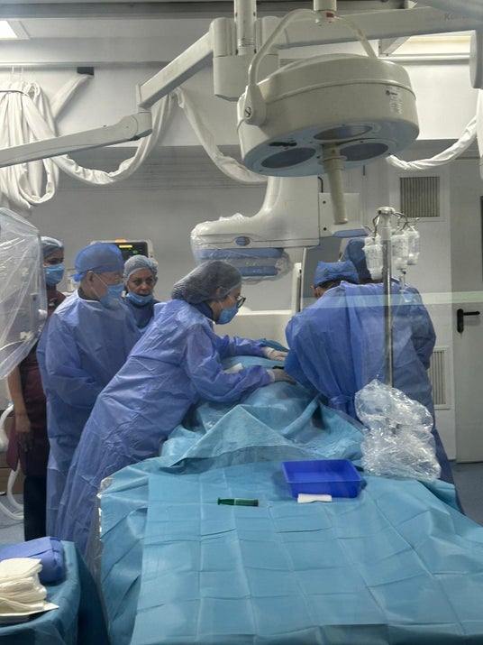 イノウエバルーンを用いた経皮経静脈的僧帽弁交連切開術(PTMC)をライブ中継(写真提供:JICA)