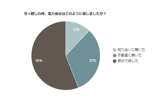 「引っ越しの時に電力会社をどのように探しましたか?」の質問について、「自分で探した」と回答した方が56%となりました。