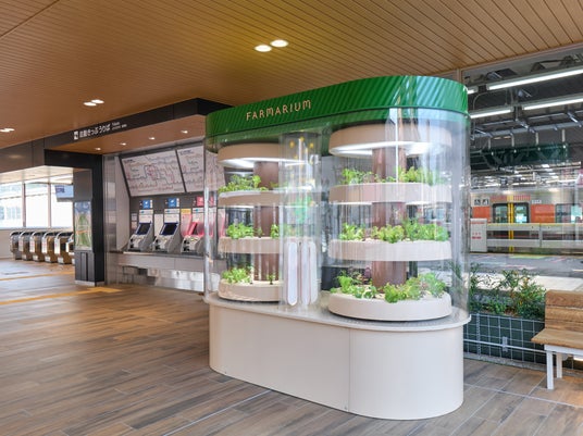 空気中の二酸化炭素(CO2)を直接回収するDAC(Direct Air Capture)技術を搭載した次世代型の植物工場「Farmarium」をJR弁天町駅で展示。空気中から回収したCO2は野菜が吸収し、光合成の促進に役立てます。