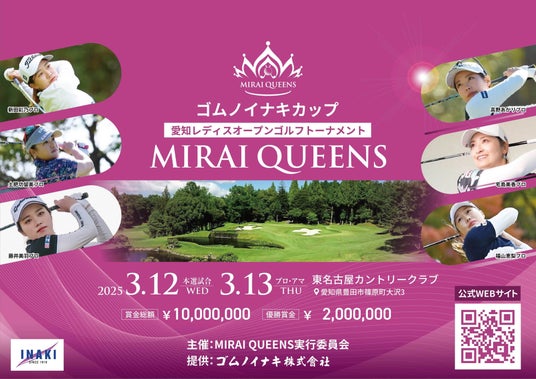 MIRAI QUEENS 実行委員会(運営会社:株式会社OSM)は、2025年3月12日(水)から13日(木)にかけて、「第1回 愛知レディスオープンゴルフトーナメント - MIRAI QUEENS -」を東名古屋カントリークラブ(愛知県豊田市)にて開催する運びとなりました。