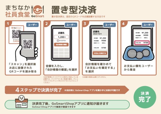 株式会社ネオマルス(本社:大分県大分市、代表取締役:甲斐武彦)は、「まちなか社員食堂GoSmart」のお支払いがよりカンタンになる「置き型決済」の提供を開始しました。