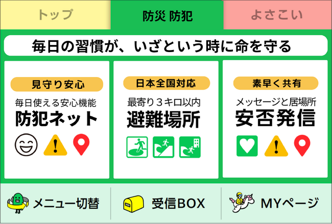 ユーザーからの「有事の際に落ち着いて使えるよう、日常的に使い慣れておきたい」という声を受けて、日常の様々なシーンで使える防犯メニューを追加
