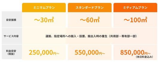 ~100平方メートル 未満の移転に特化。レイアウト提案などを省き、プロの輸送品質を「25万円からの定額プラン」で提供~
