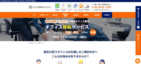 東京都を中心に物流を展開する丸正運輸株式会社(本社:東京都中央区、代表取締役:宇野 政雄)は、2026年2月1日より、中小規模オフィス向け移転サービスを開始いたします。「デザイン料なども含まれた高額な見積もりは不要」「IT機器・精密機器などを安心して運べる車両が欲しい」という企業のニーズに応え、「安全・確実・迅速」な輸送に特化した安心プランを用意しました。