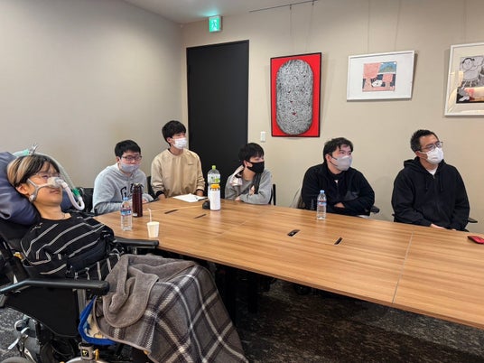 授業にオンラインで参加する、ノーサイドSTUDIOのアーティストたち(2024年12月)
