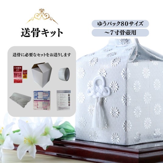 葬儀後、遠方のお墓へ納骨する際など遺骨を郵送する機会に便利な専用キット。