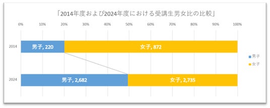 ◇【女性の健康】受講生男女比が均衡、「女子向け教育」から「男女ともに学ぶ教育」へ