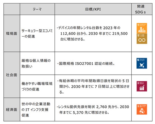 弊社は、デジタルデバイス等のレンタル・サブスク事業を通じて、環境への配慮、社会貢献、経済的な持続可能性などの向上を目指しており、今回の融資を活用してさらに一歩踏み出すこととなります。融資の実行にあたっては、弊社の企業活動が環境 ・社会 ・経済に及ぼすインパクト(ポジティブな影響およびネガティブな影響)を分析・評価いただきました。