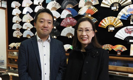 大西京扇堂は京都市中京区に所在し、嵩嶋画廊のアーティスト達のアート工芸作品は、現社長の大西将太(左)と、その母・大西道子の全面協力のもと制作されています。